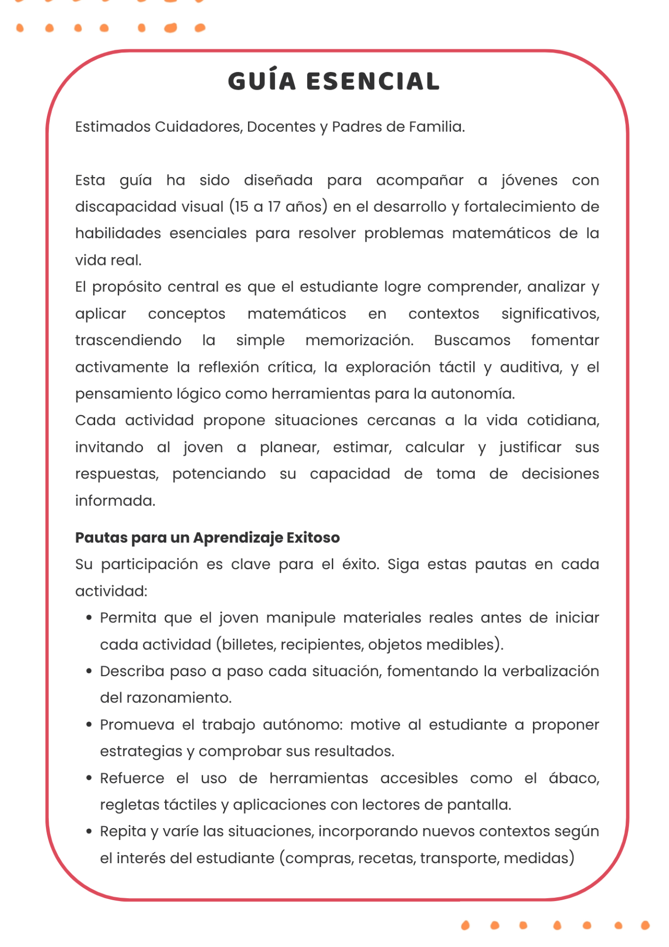 - Módulo 5 (15 a 17 años): Resolución de problemas.